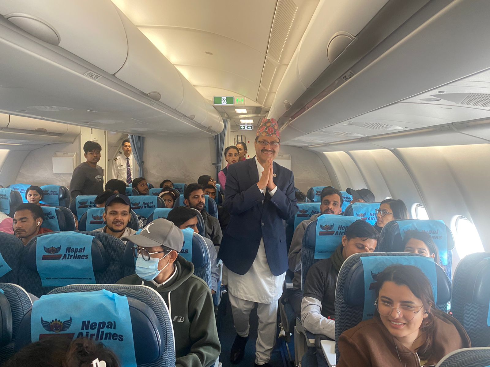 नेपाली नागरिकको उद्धारका लागि विमान आज बिहान ३ः३० बजे दुबई हुँदै त्यसतर्फ प्रस्थान गरेको थियो । उद्धारका लागि परराष्ट्रमन्त्री नारायणप्रकाश साउद विमानमा आफैँ इजरायल जानुभएको थियो । इजरायलबाट स्वदेश फर्कन चाहने नेपाली ल्याउनका लागि नेपाल एयरलाइन्सको दुई सय ७४ सिट क्षमता भएको वाइडबडी विमान इजरायल गएको हो ।
