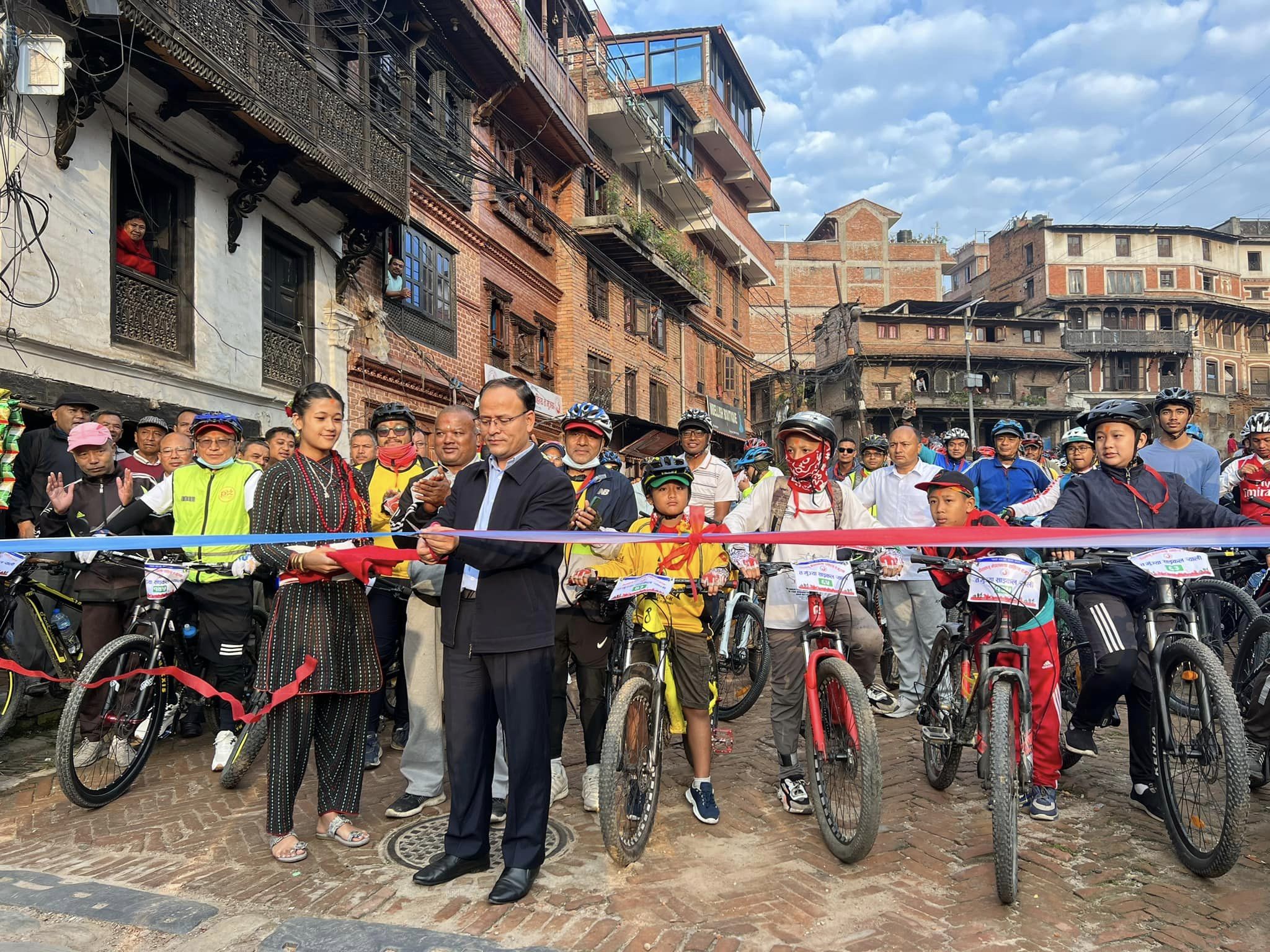 भाषा जाेगाउनका लागि भक्तपुरबाट काठमाडाैं र ललितपुरसम्मकाे साइकल रयाली सुरु