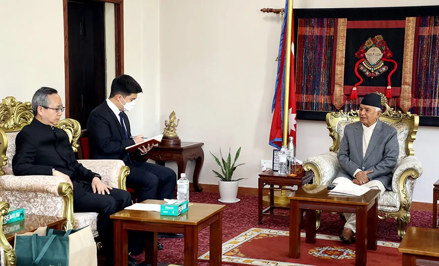 राष्ट्रपति भवनमा भएको उक्त भेटमा नेपाल-चीन सम्बन्धका साथै पारस्परिक हित र चासोका विषयमा छलफल भएको राष्ट्रपतिको कार्यालयले जनाएको छ ।