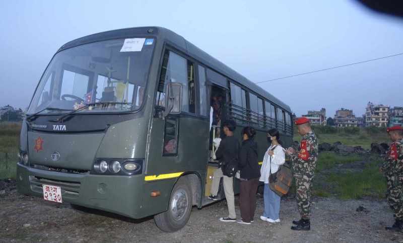 काठमाडौं । नेपाली सेना र सशस्त्र प्रहरी बलले दसैँका बेला घर जाने आफ्ना सुरक्षाकर्मीका लागि यातायात सेवा उपलब्ध गराएको छ । आ–आफ्ना कर्मचारीलाई आवतजावतमा सहजताका लागि सेवा उपलब्ध गराइएको नेपाली सेना र सशस्त्र प्रहरीले जानकारी दिएको छ ।