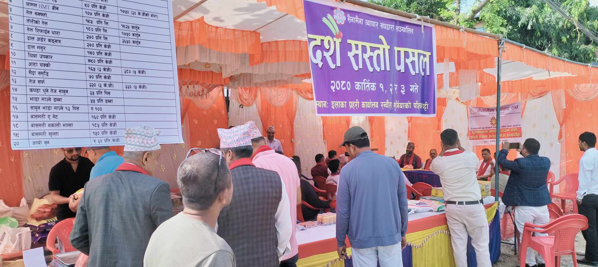 सैनामैना । सैनामैना व्यापार संघको आयोजनामा मुर्गीयामा दशैँ सस्तो पसल सञ्चालन गरिएको छ । राजमार्ग किनारको खाली ठाउँमा दैनिक उपभोग्य वस्तुहरुको मूल्यसूचिसहित सुरु भएको सस्तो पसल तीन दिनसम्म चल्नेछ ।