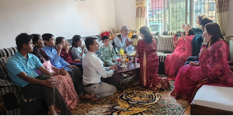 टीका लगाउँदा मान्यजनले आशिर्वाद दिने चलन रहेको हुन्छ।
