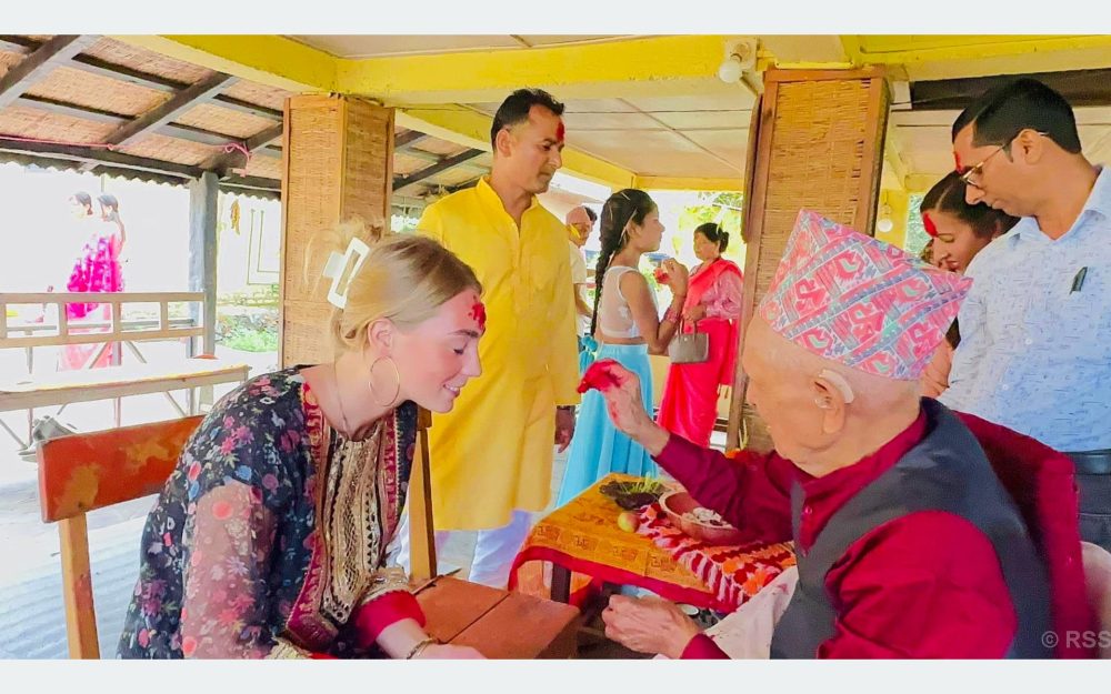 सौराहामा विदेशी पर्यटकले मनाए दसैँ, टीका र जमरा थाप्न पाउँदा दङ्ग