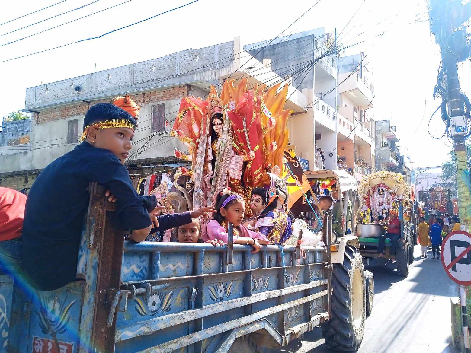 ट्रक, ट्राली लगायत विभिन्न सवारी साधनमा मूर्तिलाई राखेर लावा लस्करका साथ, बाजागाजासँगै बैण्ड बाजा बजाएर नाँचगान गर्दै (जय मातादी) को नारा लगाउँदै मूर्ति सेलाइने गरिएको दुर्गा पुजा समिति फुल्टेक्राका अध्यक्ष चन्देश्वरराज त्रिपाठीले बताए ।