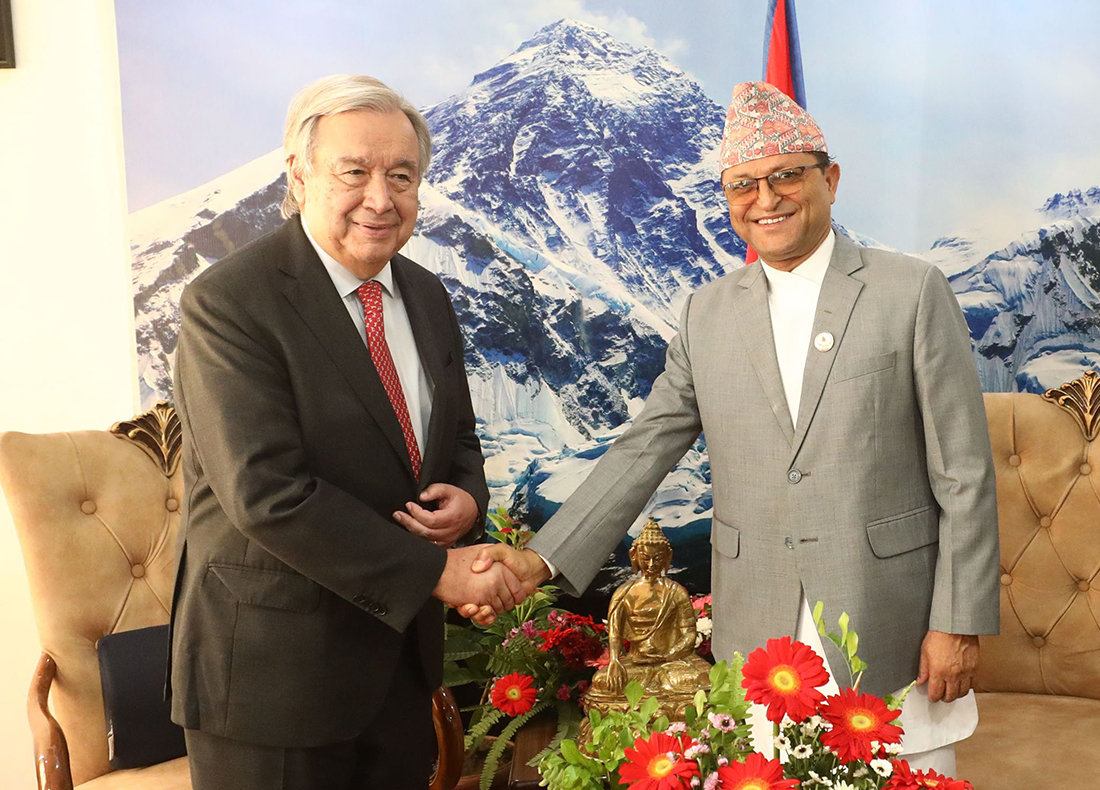 काठमाडौं । संयुक्त राष्ट्रसङ्घका महासचिव एन्टोनियो गुटेरेस र राष्ट्रियसभा अध्यक्ष गणेशप्रसाद तिमिल्सिनाबीच भेटवार्ता भएको छ । सिंहदरवारस्थित सङ्घीय संसद सचिवालयमा रहेको राष्ट्रियसभा अध्यक्षको कार्यकक्षमा उनीहरुबीच भेटवार्ता भएको हो ।