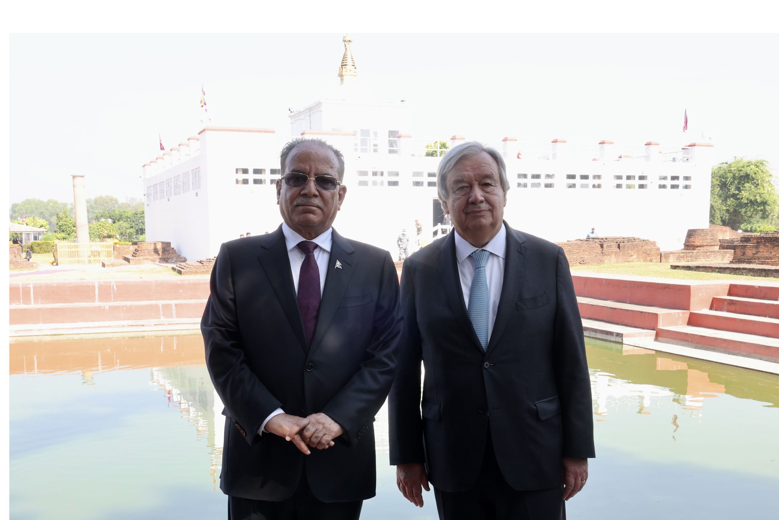 लुम्बिनीबाट प्रधानमन्त्री प्रचण्ड र यूएन महासचिव गुटेरेसले गरे विश्व शान्तिको आह्वान