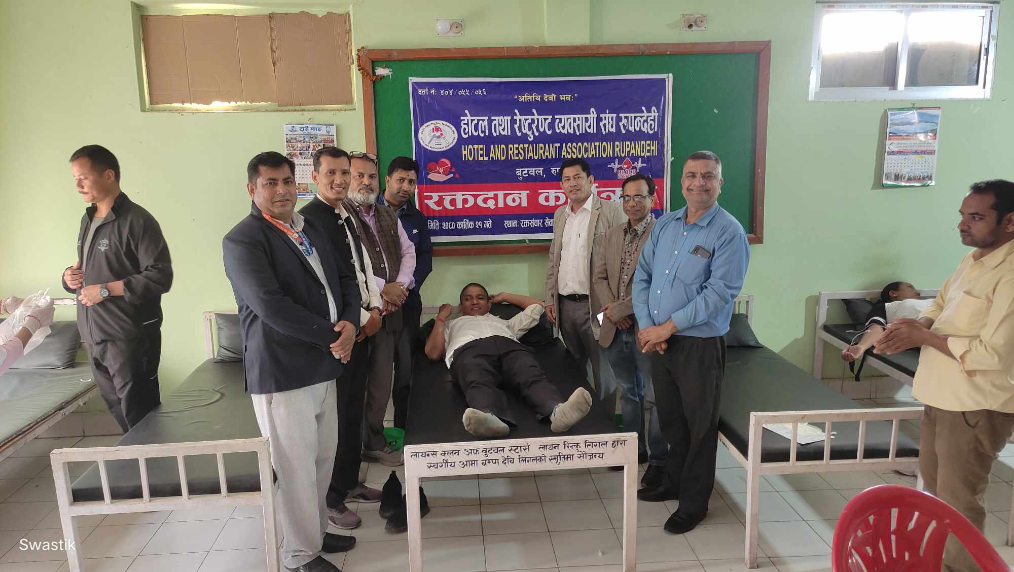 बुटवल । होटल तथा रेष्टुरेन्ट व्यवसायी संघ रुपन्देहीको आयोजनामा मंगलबार बुटवलमा बृहत रक्तदान कार्यक्रम सम्पन्न गरिएको छ ।