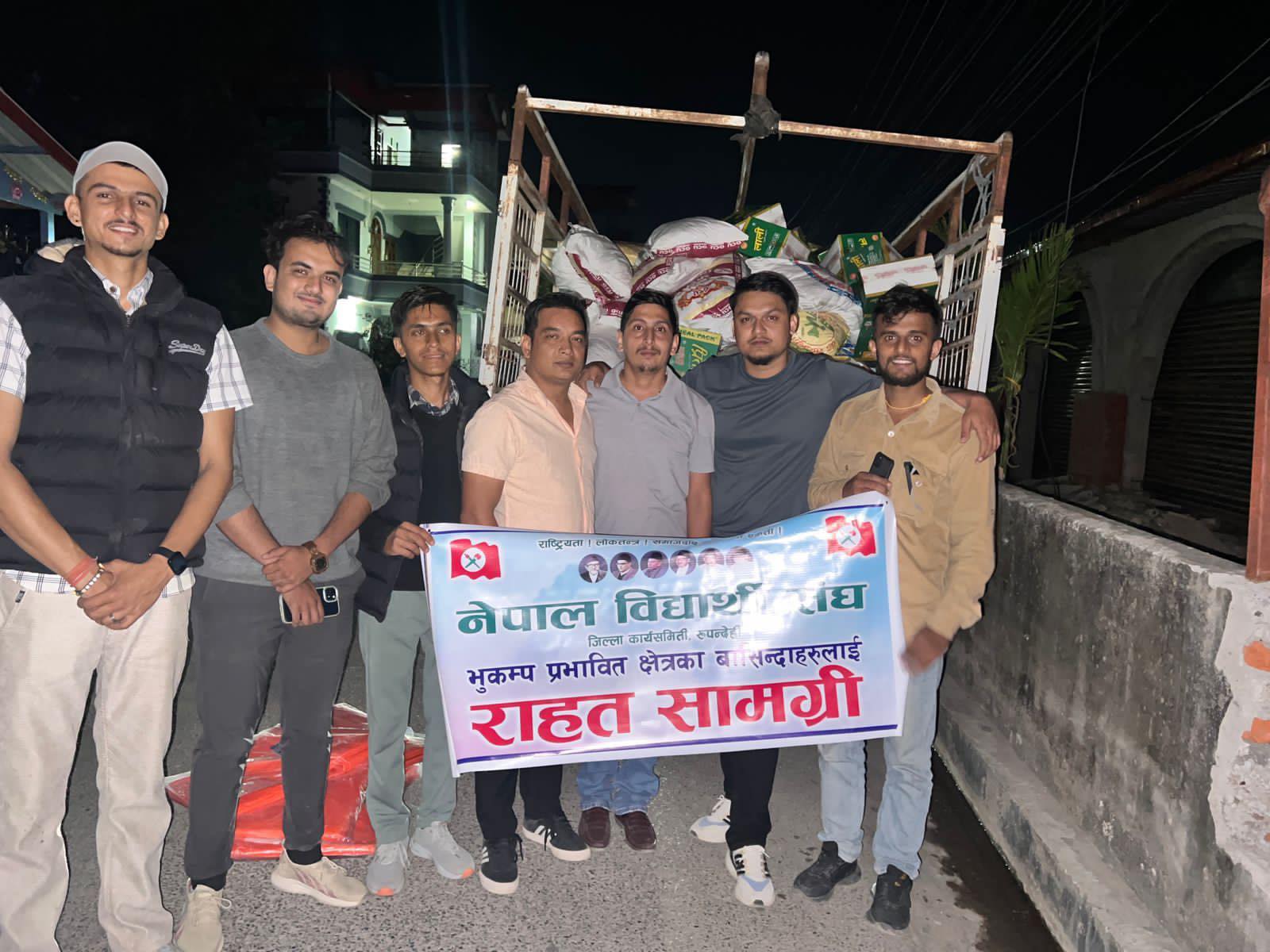 बुटवल । नेपाल विद्यार्थी संघ जिल्ला कार्यसमिति रुपन्देहीले जाजरकोट भूकम्पबाट प्रभावितको लागि राहत संकलन गरी प्रस्थान गरेको छ । जिल्ला सभापति सन्दीप पाण्डेका अनुसार सोमबार राहत सामग्री जाजरकोट पठाइएको हो ।