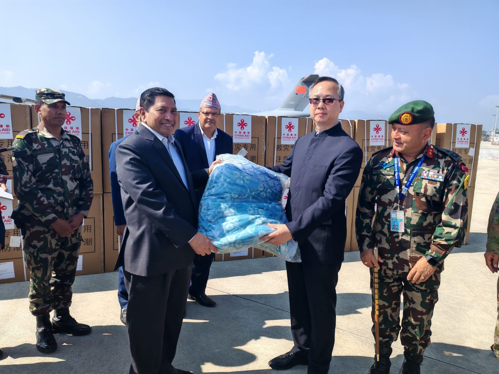 दुईवटा एयरक्राफ्टबाट चार हजार ६ सय ब्लाङ्केट र ६ सय टेन्ट आएको छ । यता केरुङ नाका हुँदै चिनियाँ सरकारले झन्डै १० करोड बराबरको २३ ट्रक छुट्टै राहत सामाग्री पठाएको छ, जसमा २ हजार तीन सय टेण्ट, दुई हजार ब्लाङ्केट, सात सय टर्पलिन, पाँच सय वटा महामारी रोक्ने स्पेयर र साँढे १० हजार वटा लामखुट्टे मार्ने औषधि छन् । बुधबार बिहान काठमाडौं आइपुगेको उक्त सामाग्री तत्काल प्रभावित क्षेत्रमा पठाइनेछ भने पोखरा आएको सागाग्री पनि प्रभावित क्षेत्रमा पठाउने तयारी छ ।