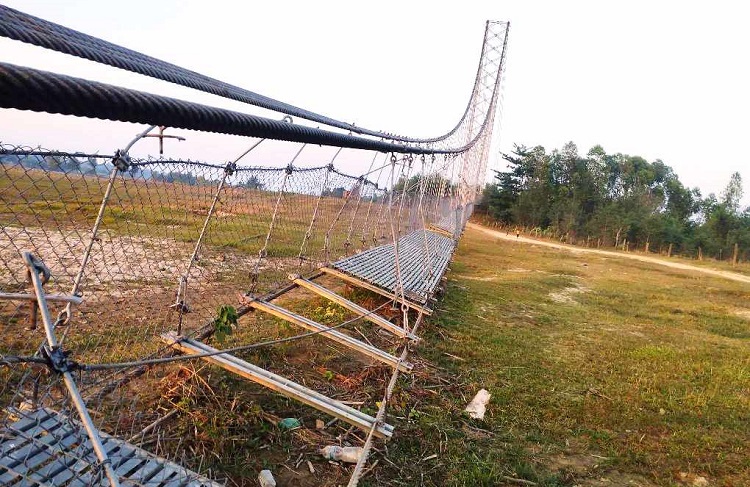 गत वर्षको भदौमा नदीमा आएको बाढीले रु तीन करोडको लागतमा बनेको झोलुङ्गे पुलको दक्षिणतर्फको पिलर भत्काउँदा पुल नदीमा खसेको थियो । नदीमा खसेको पुलको आधा सामान खोलेर वडा कार्यालयमा राखिएको छ । पुलको आधा सामान नदीमै खसेको अवस्थामा रहेको छ । खसेको पुलका सामान नदीमै अलपत्र अवस्थामा रहँदा चोरी हुने क्रम बढेको स्थानीय बासिन्दा मङ्गलप्रसाद चौधरीले बताए ।