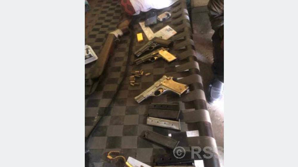 काठमाडौं । सशस्त्र प्रहरी बलले रौतहटबाट चार थान अत्याधुनिक हतियार बरामद गरेको छ । इन्टेलिजेन्स ब्यूरोले रौतहट यमुनामाइ नगरपालिका–३ स्थित एक घरबाट आज ९ एमएम पेस्तोल तीन नाल, त्यसमा प्रयोग हुने १३ थान गोली, छ थान म्याग्जिन र एक थान एयर गन बरामद गरेको हो ।