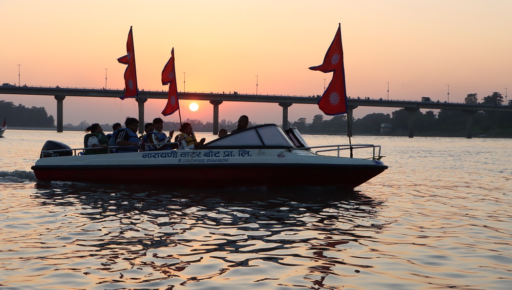 भरतपुर । नारायणी नदी किनारमा मोटर बोट चढेर मनोरञ्जन लिन आउने आन्तरिक पर्यटकको सङ्ख्या बढ्दै गएको छ । दसँैं तिहार र छठपर्वका समयमा यहाँ पर्यटकको भीड नै लागेको थियो । नदी किनारमा ‘रिभरबीच मोडल’को संरचना निर्माण गरिएपछि यहाँ घुम्न आउने र मोटरबोट चढ्नेको सङ्ख्या बढेको भरतपुर महानगरपालिका–१ का वडा सदस्य मनोज घिमिरेले जानकारी दिए ।