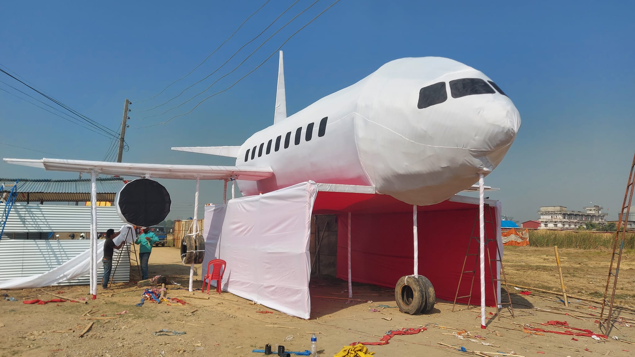 विमानस्थल सञ्चालनका लागि दबाब दिन मेलामै विमानको आकृति