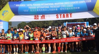 पोखरा । पोखरामा आज सम्पन्न नेपाल–पोखरा अन्तर्राष्ट्रिय क्रसकन्ट्री दौड प्रतियोगितामा नेपाली टोली च्याम्पियन बनेको छ । चिनियाँ दूतावास, पोखरा महानगरपालिका र नेपाल पर्यटन बोर्डको संयुक्त आयोजनामा भएको प्रतियोगितामा टिम इभेन्टको ४० किलोमिटरको प्रतिस्पर्धामा नेपाली टोलीका सुमन कुलुङ, इन्द्रकला नेम्वाङ र रमेश लिम्बूको टोली च्याम्पियन बन्दै नगद रु तीन लाख ६० हजार पुरस्कार पाएको छ ।