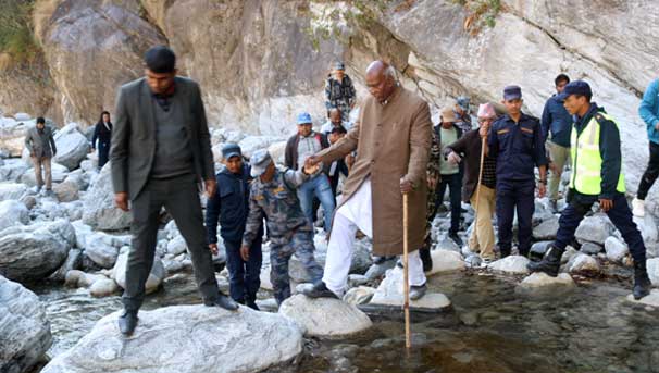 काठमाडौं । खानेपानीमन्त्री महिन्द्रराय यादव खानेपानी आयोजना निरीक्षणका लागि मेलम्ची गेका छन । बाढीका कारण क्षति पुगेको मेलम्ची आयोजनाको मुहानलगायत क्षेत्रमा अनुगमनका लागि उनी त्यहाँ पुगेका हुन ।