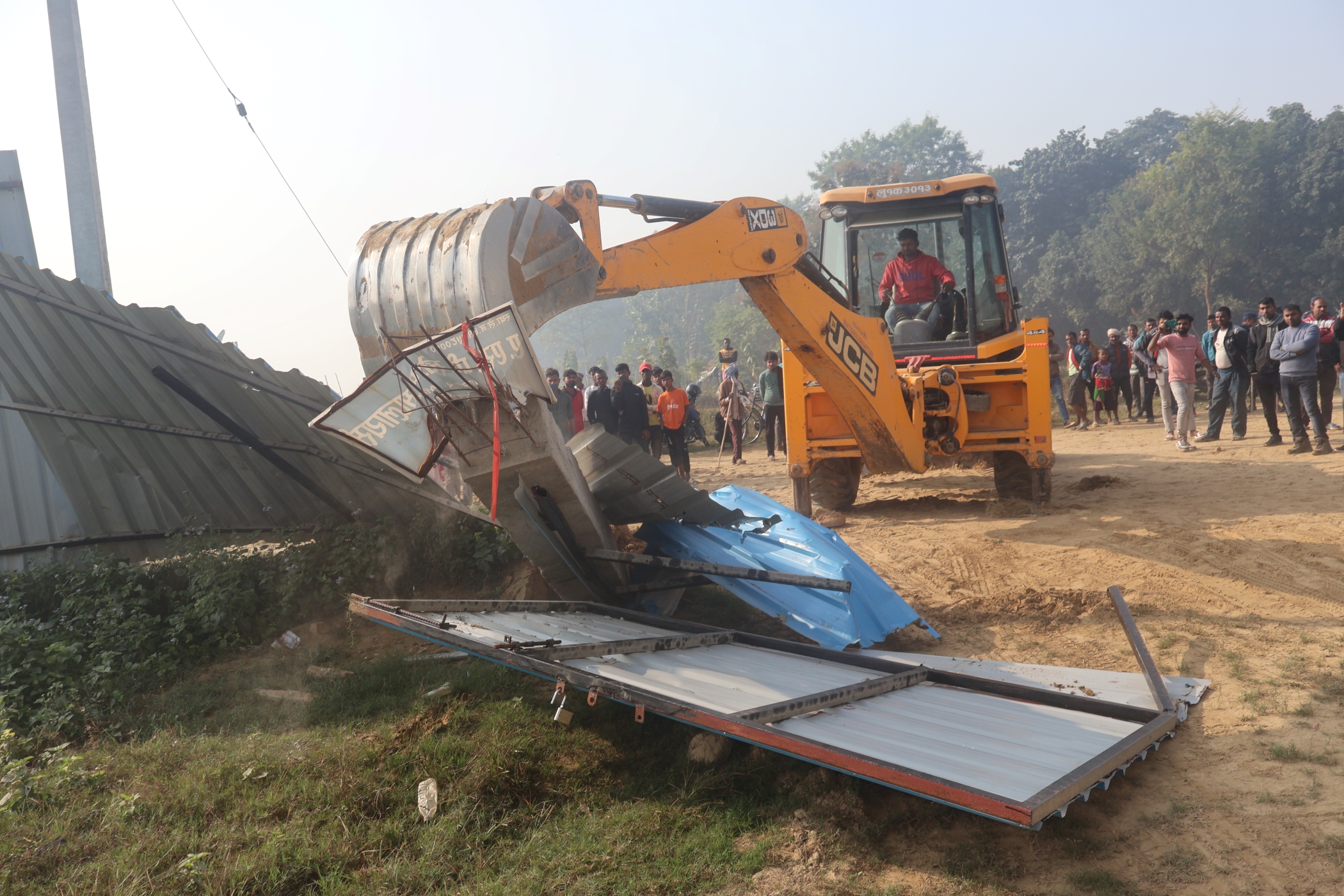 सीमा क्षेत्रमा रहेको कवाडको गोदाममा रोहिणी गाउँपालिकाले लगायो डोजर