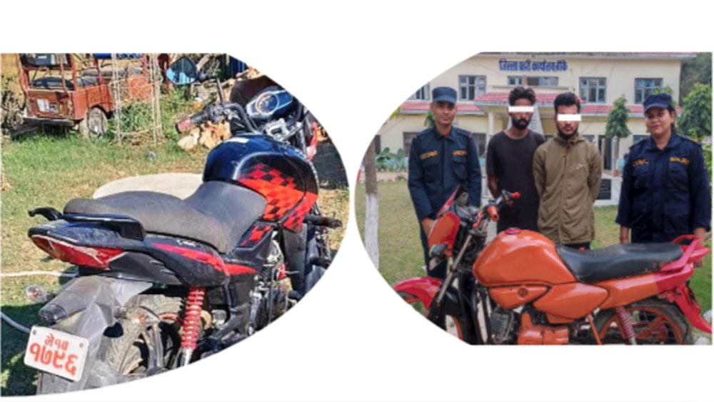गत १४ गतेपनि प्रहरीले २ जना चोर सहित एक मोटरसाइकल स्वरुप परिवर्तन गरेको अवस्थामा फेला परेको थियो । मोटरसाईकल चोरीको आरोपमा १४ गते पक्राउ पर्नेमा नेपालगन्ज उपमहानगरपालिका वडा नम्बर ८ का अजयसिंह बाडिया र वडा नम्बर ९ का रमेश भन्ने हरि सुनार रहेका थिए ।
