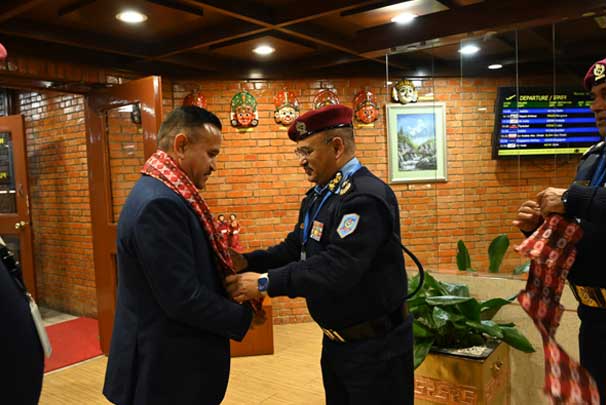 टोलीलाई प्रहरी अतिरिक्त महानिरीक्षकहरू, प्रहरी नायव महानिरीक्षकलगायत वरिष्ठ प्रहरी अधिकृतहरूले त्रिभुवन अन्तर्राष्ट्रिय विमानस्थलमा हार्दिक स्वागत गरे ।