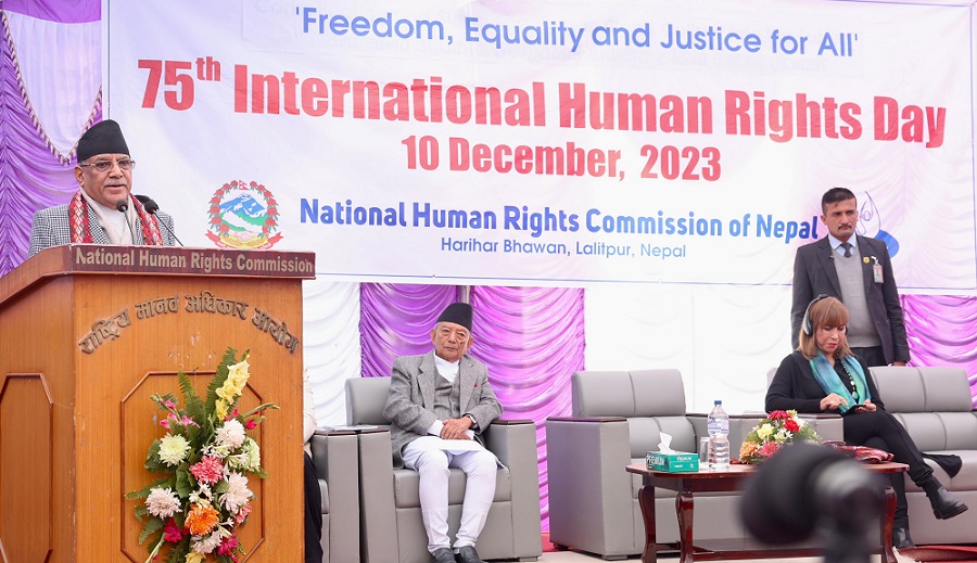 राष्ट्रिय मानव अधिकार आयोगले ७५ औं अन्तर्राष्ट्रिय मानव अधिकार दिवसका अवसरमा आज आयोजना गरेको कार्यक्रममा प्रधानमन्त्री प्रचण्डले आयोगका सबै सिफारिस कार्यान्वयनका लागि आफूले प्रयत्न गर्ने बताए ।