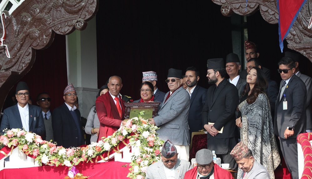 प्रधानमन्त्री पुष्पकमल दाहालले ‘प्रचण्ड’ले वरिष्ठ नेत्र विशेषज्ञ प्राध्यापक सन्दुक रुइत, अभिनेत्री मनिषा कोइराला, साहित्यकार दुर्गालाल श्रेष्ठ, ओलम्पियन वैकुण्ठ मानन्धर, स्टक्चरल इन्जिनियर मनोहरलाल राजभण्डारीलाई सम्मान गरे ।