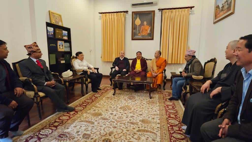 भेटमा लुम्बिनी विकास कोषका कोषाध्यक्ष ढुण्डीराज भट्टराई, वरिष्ठ निर्देशक ज्ञानिन राई, नेपाल-चीनमैत्री समाज, लुम्बिनीका अध्यक्ष नारायणप्रसाद सापकोटाको उपस्थिति थियो ।