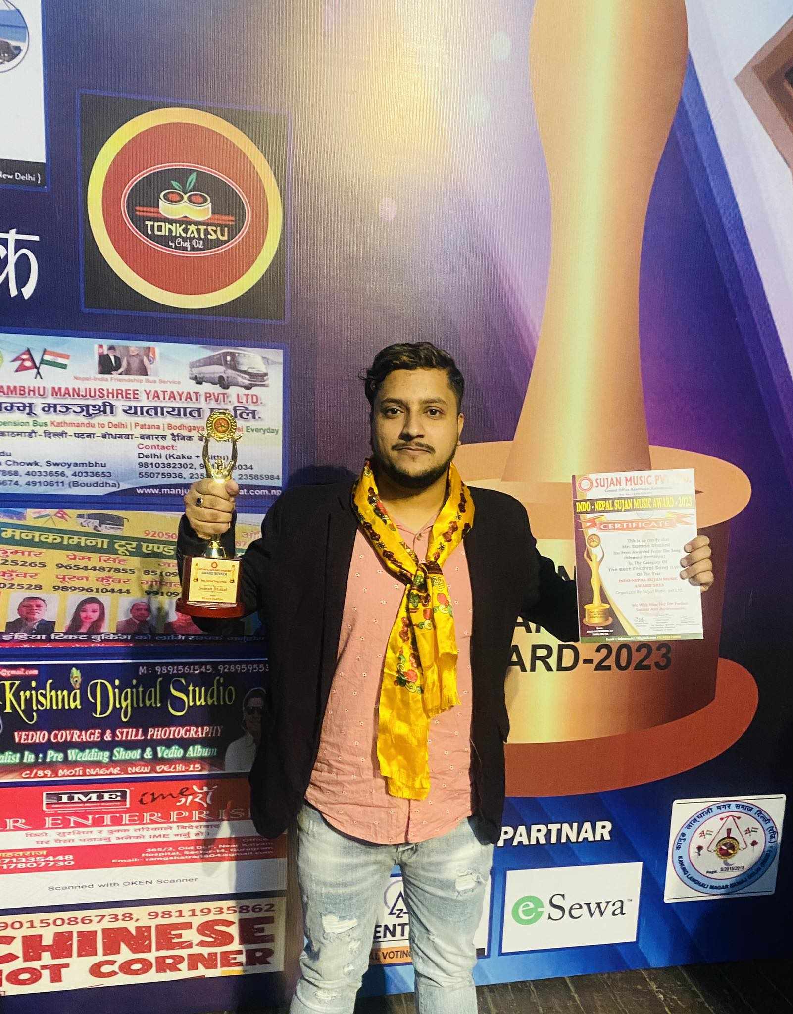 गीत संगीतको संघर्ष बोकेर यो दौरानमा उत्रिदा आज जिवनको यो ढकालको पहिलो अवार्ड हो ।