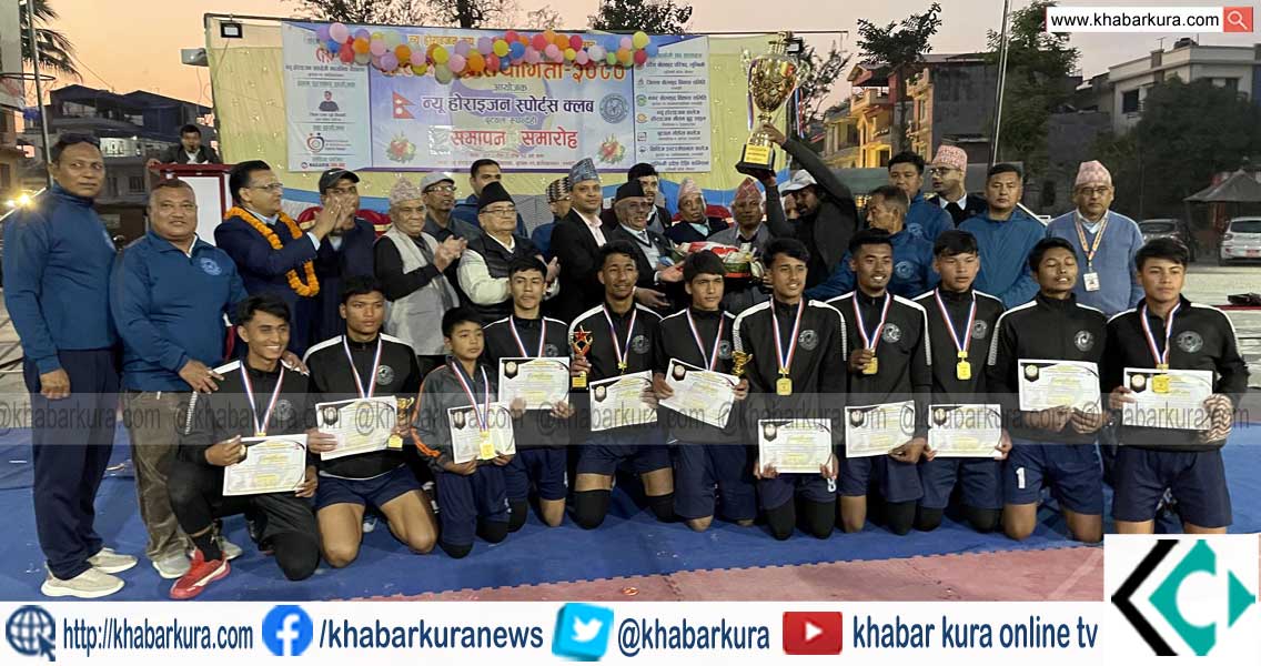 न्यू होराइजन स्पोर्ट्स क्लबले आयोजना गरेको न्यू होराइजन कप अन्तर मावि जिल्ला स्तरीय छात्र भलिबल प्रतियोगिताको उपाधी न्यू होराइजनले हात पारेको छ । ८ गतेबाट सुरु भएको प्रतियोगितामा न्यू होराइजनमावीले मणिमुकुन्द मावि पराजित गर्दै उपाधी हात पारेको हो ।