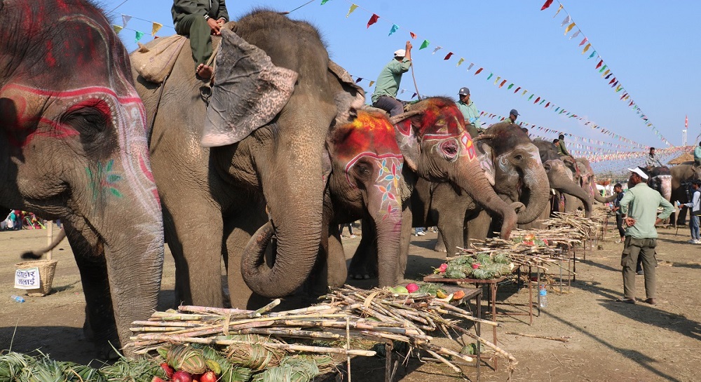 चितवन । चितवनको पर्यटकीय नगरी सौराहामा जारी १७ औँ चितवन हात्ती तथा पर्यटन महोत्सवमा शुक्रबार यहाँका हात्तीलाई वनभोज खुवाइएको छ । चित्रसारी मैदानमा सरकारी र निजी ६५ वटा हात्तीलाई वनभोज खुवाइएको हो । वनभोजमा हात्तीलाई मन पर्ने खानेकुरा दिइएको थियो ।