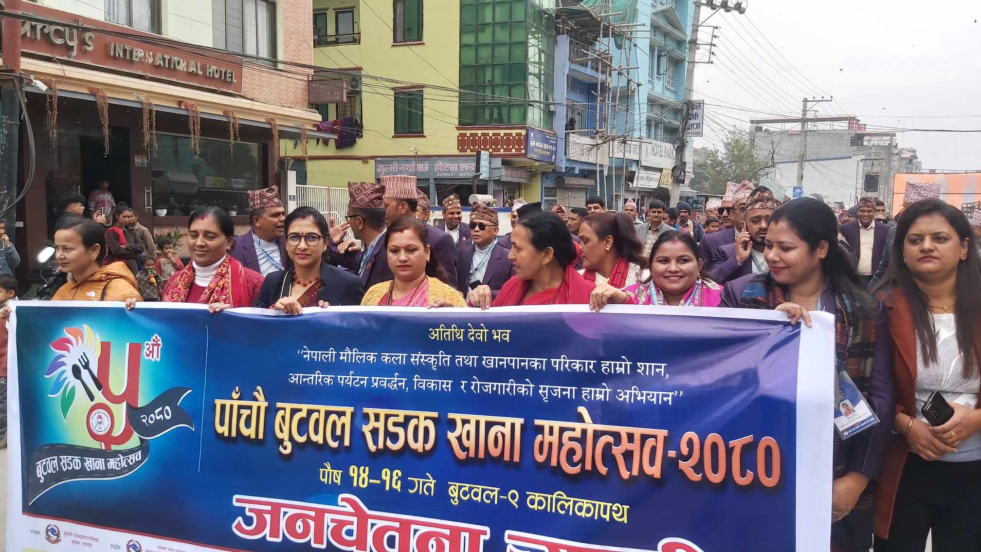 बुटवलको सडक खाना महोत्सवको प्रचार गर्न जनचेतना र्याली (फोटोफिचर)