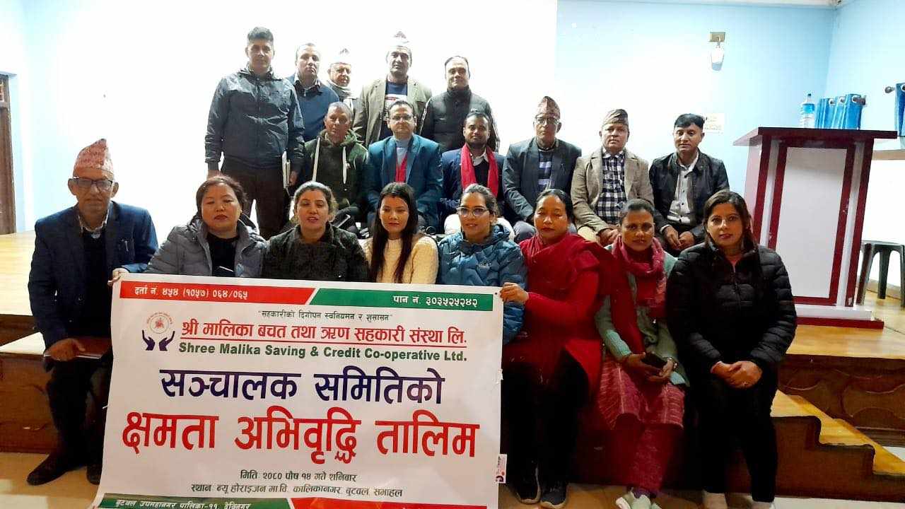 बुटवल । मालिका बचत तथा ऋण सहकारी संस्था लिमिटेडले एकदिने क्षमता अभिवृद्धि तालिम सम्पन्न गरेको छ । बुटवलको देवीनगरमा रहेको सहकारीले संचालक समिति तथा कर्मचारीहरुको क्षमता वृद्धि गर्नको लागि एकदिने क्षमता अभिवृद्धि तालिम सम्पन्न गरेको हो ।