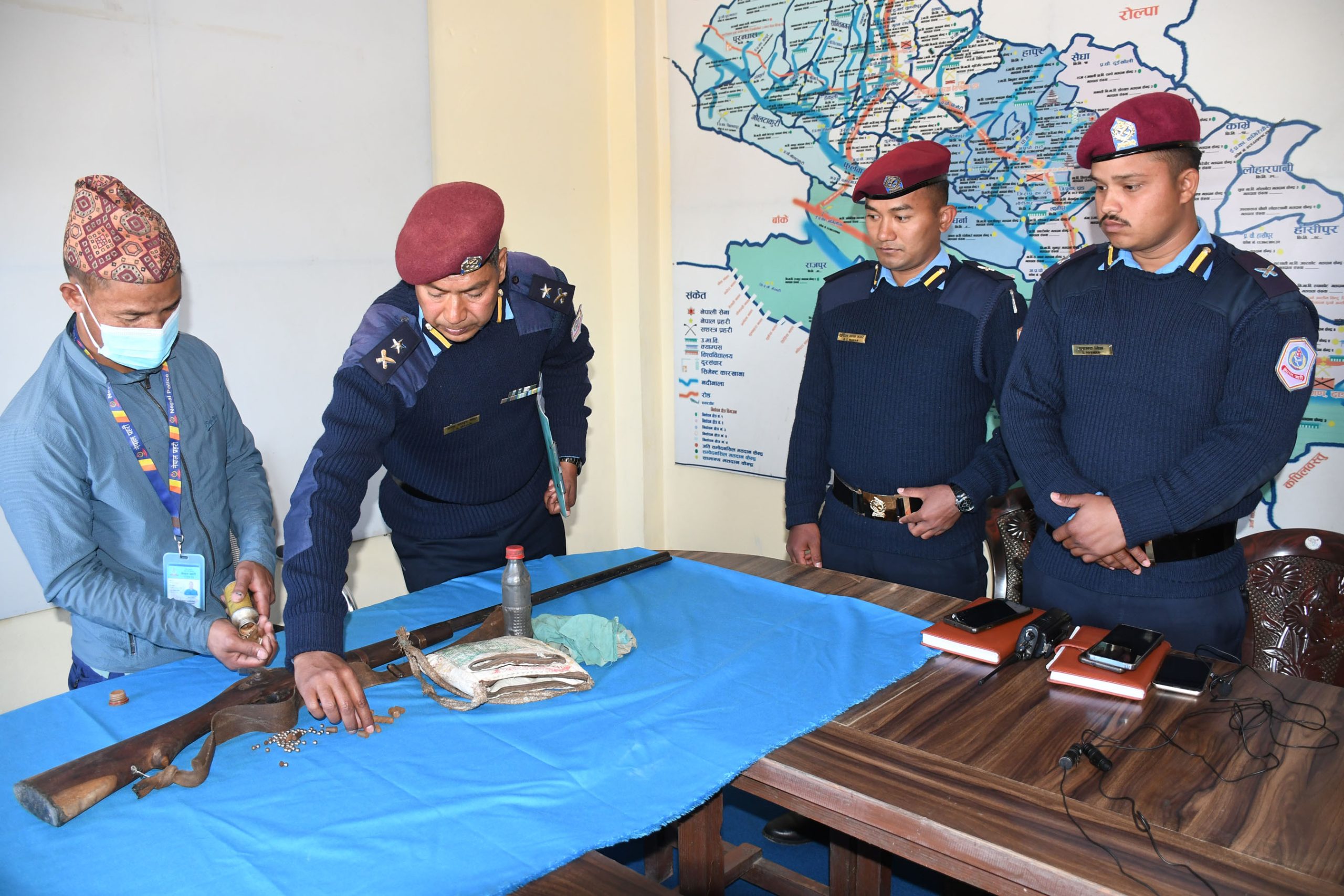 प्रहरीले १५ गते स्थानीय मेघराज कुँवरको घरबाट एक नाल बन्दुक, बन्दुकमा प्रयोग हुने १०८ थान छर्रा, दुई थान गोली, लाम्चो आकारका ३९ थान गोली, बारुद ७५ ग्राम, केप ५ थान र हरियो कपडाको लत्ता (सूती) एक थान बरामद गरेको थियो । हातहतिरयारसहित मेघराजलाई समेत प्रहरीले पक्राउ गरेको छ । पक्राउ परेकाहरुविरुद्ध  थप अनुसन्धान भइरहेको प्रहरीले जनाएको छ ।