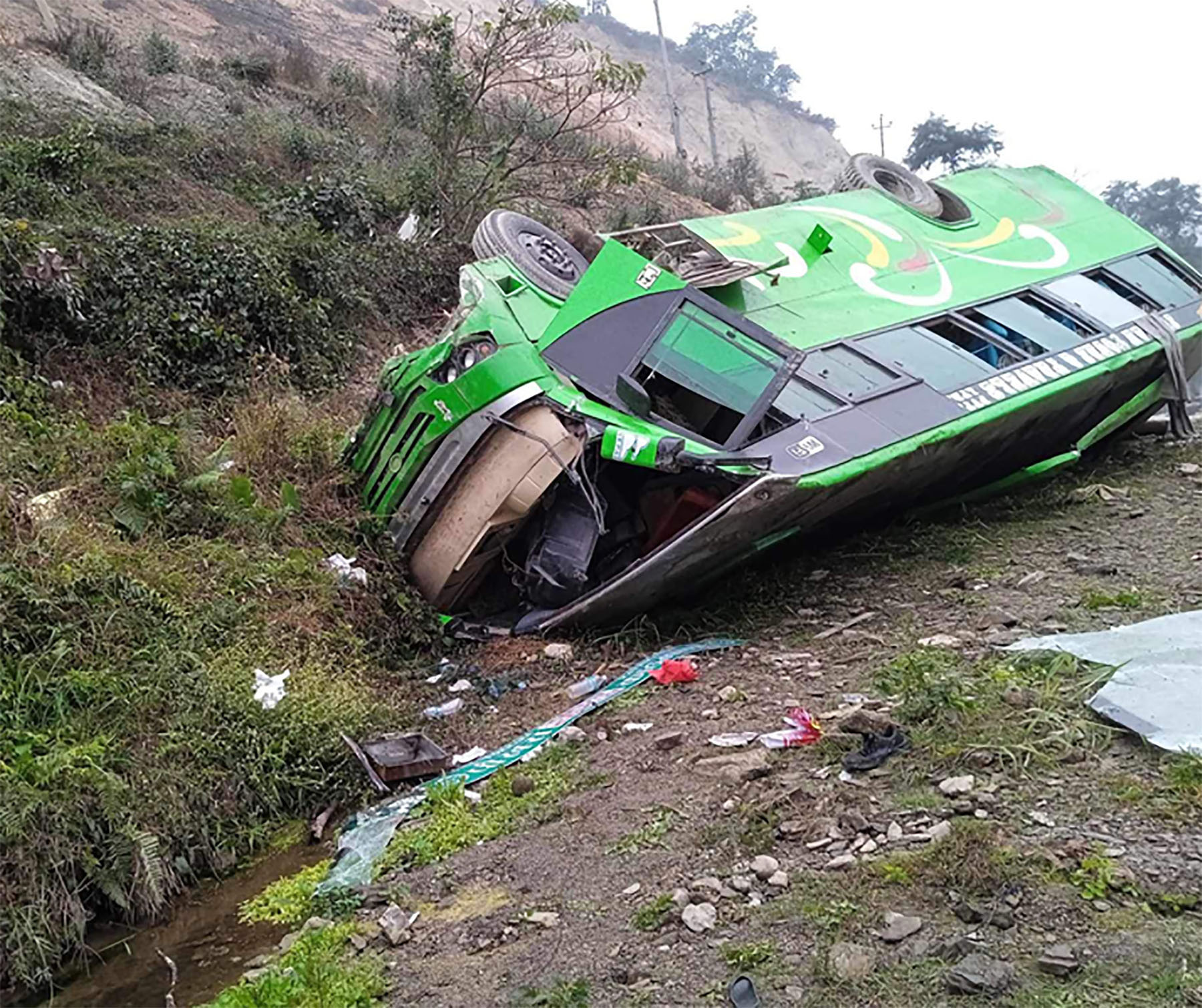 मौरीबजारमा बस दुर्घटना : ३२ जना घाइते