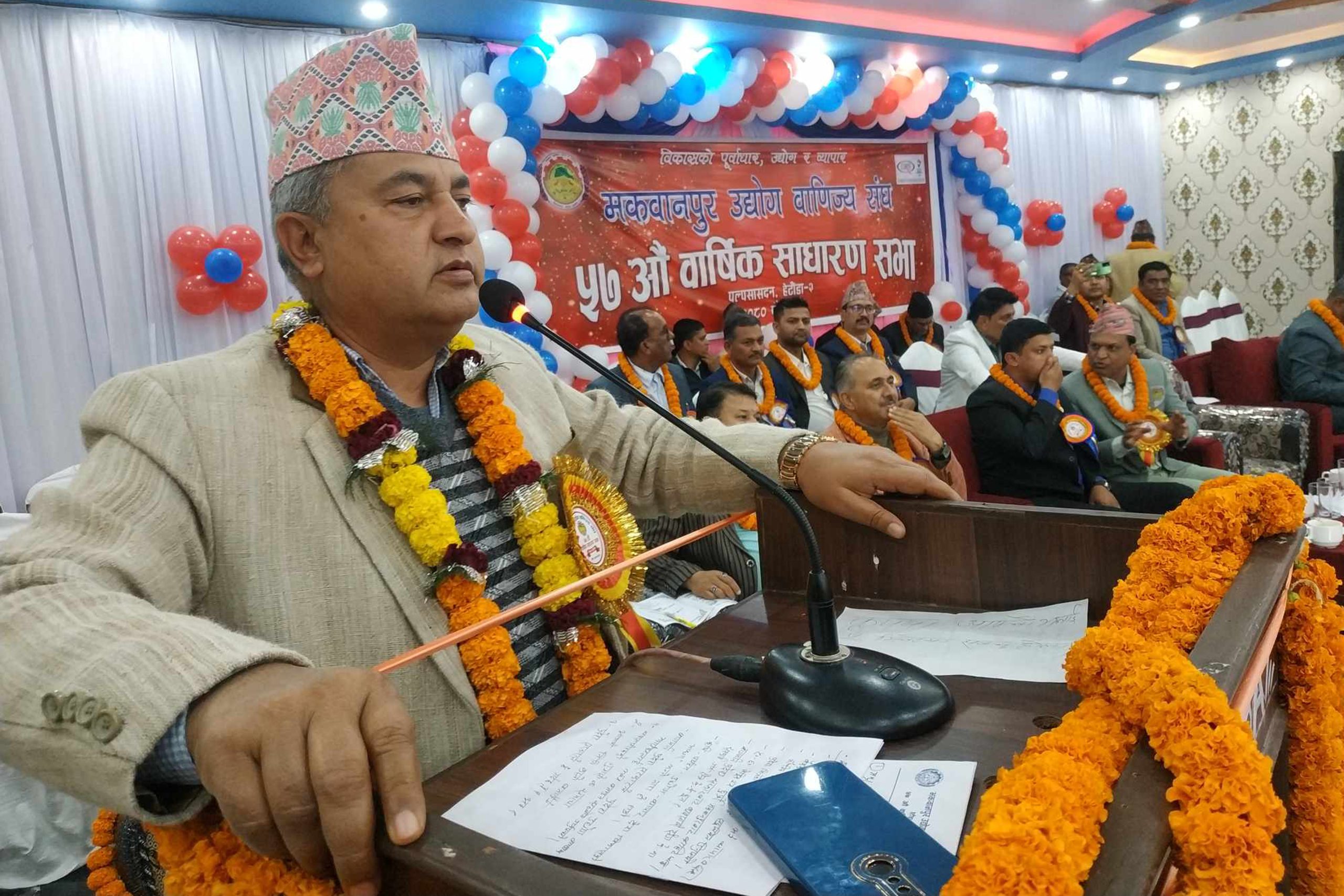 मकवानपुर । बागमती प्रदेश मुख्यमन्त्री शालिकराम जम्कट्टेलले हेटौँडा बजार क्षेत्रका सडक विस्तारमा सहयोग गर्न आग्रह गरेका छन । मकवानपुर उद्योग वाणिज्य सङ्घको ५७ औँ वार्षिक साधारणसभामा मुख्यमन्त्री जम्कट्टेलले प्रदेश सरकारको अधिकारभित्र नपरे पनि प्रदेश राजधानी क्षेत्रका सडक विस्तार गर्नुपर्नेमा जोड दिए ।