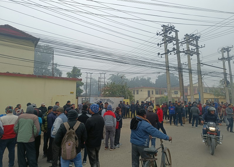 उद्योग नै बन्द गरी विद्युत् वितरण केन्द्र अगाडि कर्मचारी र संचालकको विरोध प्रदर्शन