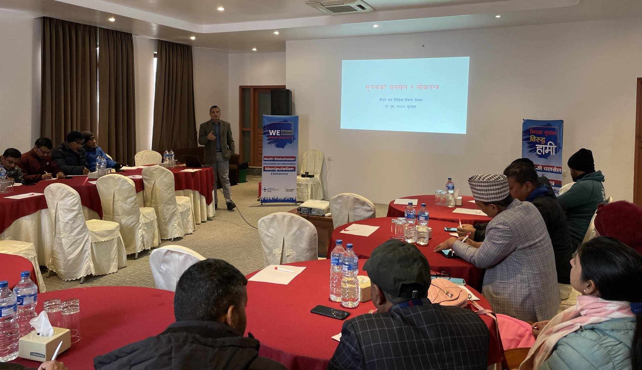 बुटवल । प्रविधिको विकाससँगै मिथ्या सूचना बढेकाले सचेत हुनु पर्ने एक कार्यक्रममा बोल्ने बक्ताहरुले बताएका छन् । सेन्टर फर मिडिया रिर्सच नेपालले विहीबार बुटवलमा आयोजना गरेको सूचनाको चलखेल र लोकतन्त्र विषयमा सरोकारवालहरुसँगको छलफल विषयक कार्यक्रममा बोल्ने वक्ताहरुले सो कुरा बताएका हुन् ।