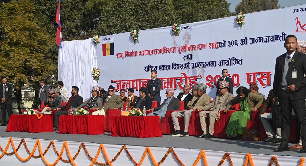 राप्रपाका अध्यक्ष राजेन्द्र लिङ्देनसहितका नेताले सहभागी विशिष्ट पाहुनालाई स्वागत गरेका थिए। सो अवसरमा प्रधानमन्त्री प्रचण्डले पृथ्वीनारायण शाहको तस्वीरमा पुष्पहार अर्पण गरेका थिए।
