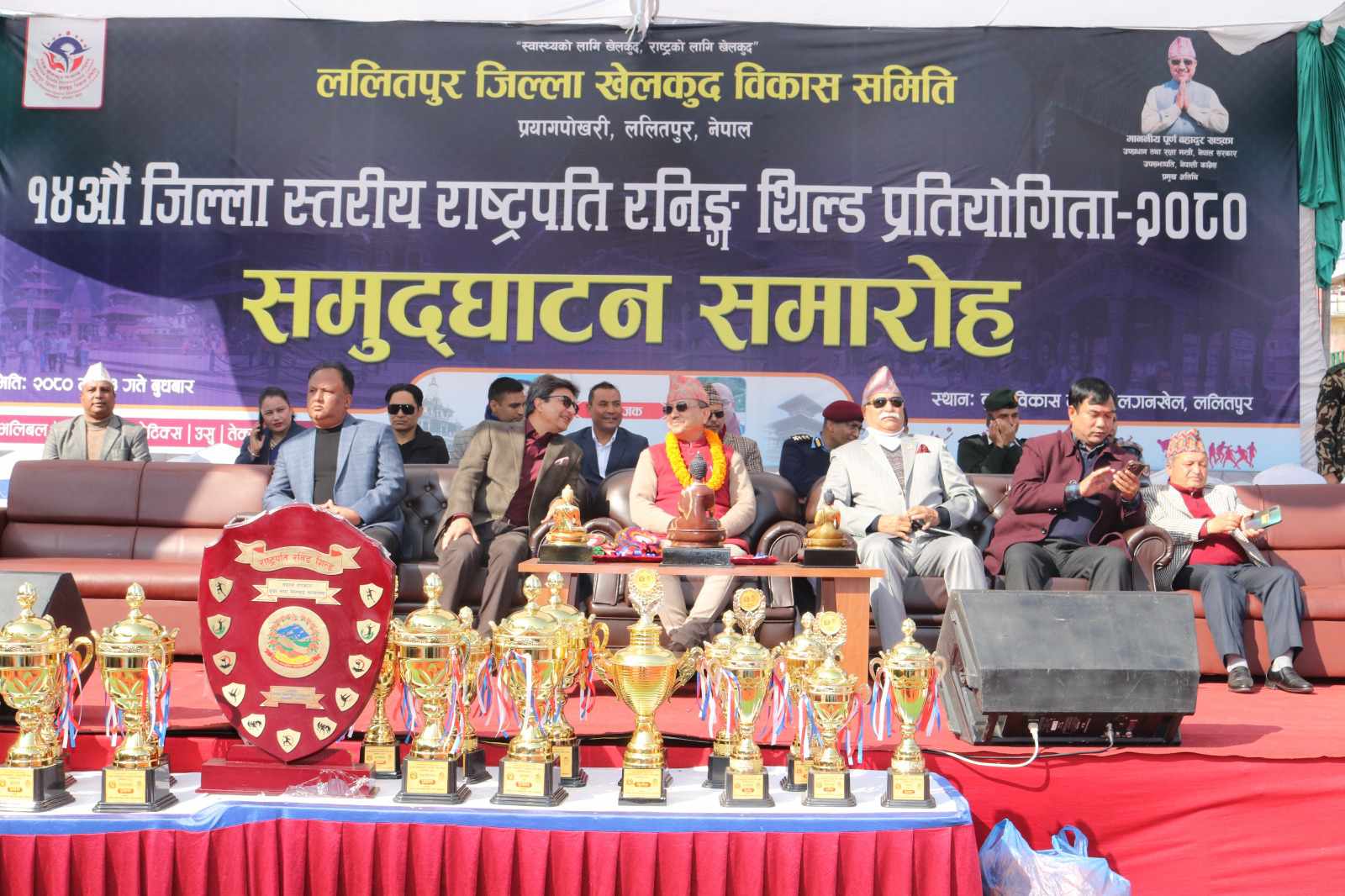 ललितपुर जिल्ला खेलकुद बिकास समितिद्वारा बुधबार बुद्धि बिकास खेलमैदान लगनखेलमा आयोजित १४औँ जिल्लास्तरीय राष्ट्रपति रनिङ्ग सिल्ड प्रतियोगिताका अवसरमा उपप्रधानमन्त्री खड्काले राष्ट्रिय तथा अन्तर्राष्ट्रिय खेलाडी उत्पादनका लागि सरकारले सक्दो सहयोग गर्नेमा प्रतिबद्धता जनाएका हुन् ।