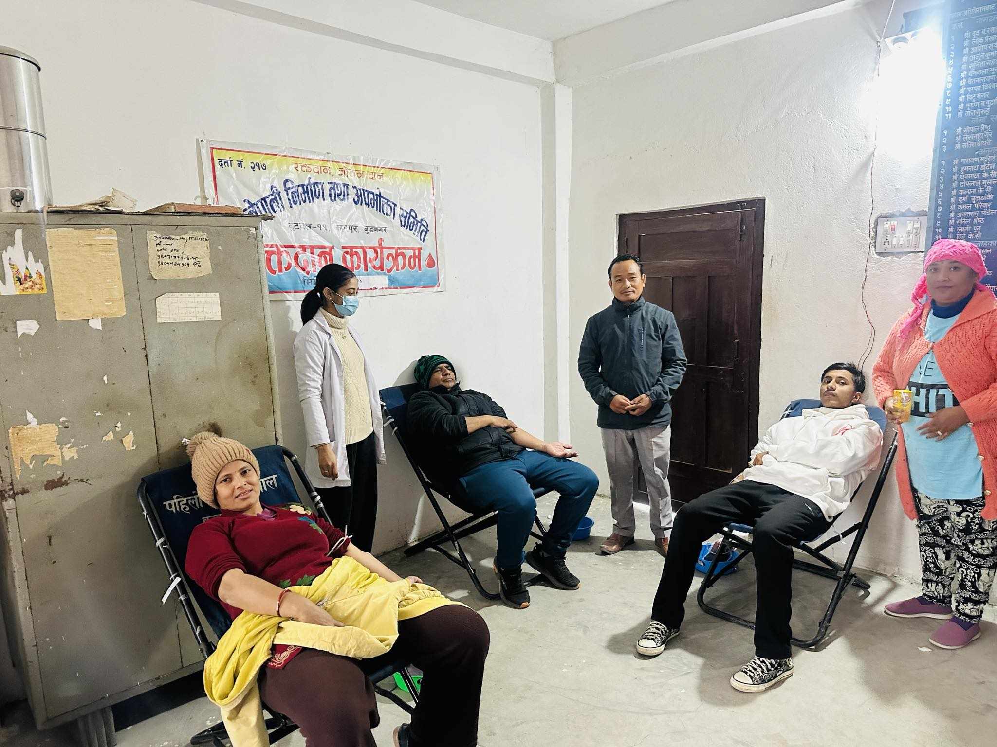 बुटवल । खानेपानी निर्माण तथा उपभोक्ता समिति बुटवल-११ बुद्धनगर नहरपुरले विहिबार आयोजना गरेको रक्तदान कार्यक्रममा ६८ प्वाइन्ट रगत संकलन भएको छ । संस्थाले सामाजिक उत्तरदायित्व अन्तरगत रक्तदान कार्यक्रम आयोजना गरेको हो ।