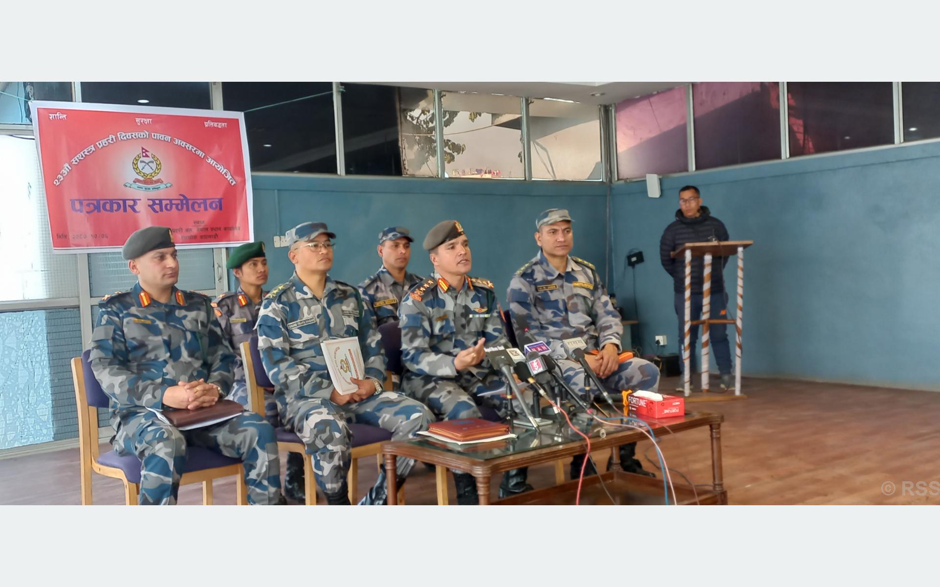अर्धसैनिक बलका रुपमा रहेको सशस्त्र प्रहरीले सीमा सुरक्षा, दङ्गा नियन्त्रण, दैविक प्रकोप एवं विपद् व्यवस्थापनमा उद्धार र राहत तथा राजश्व सङ्कलनको जिम्मेवारीमा रही महत्वपूर्ण कार्य गर्दै आएको छ । बलले यही माघ ९ गते आफ्नो २३औँ स्थापना दिवस मनाउँदैछ ।