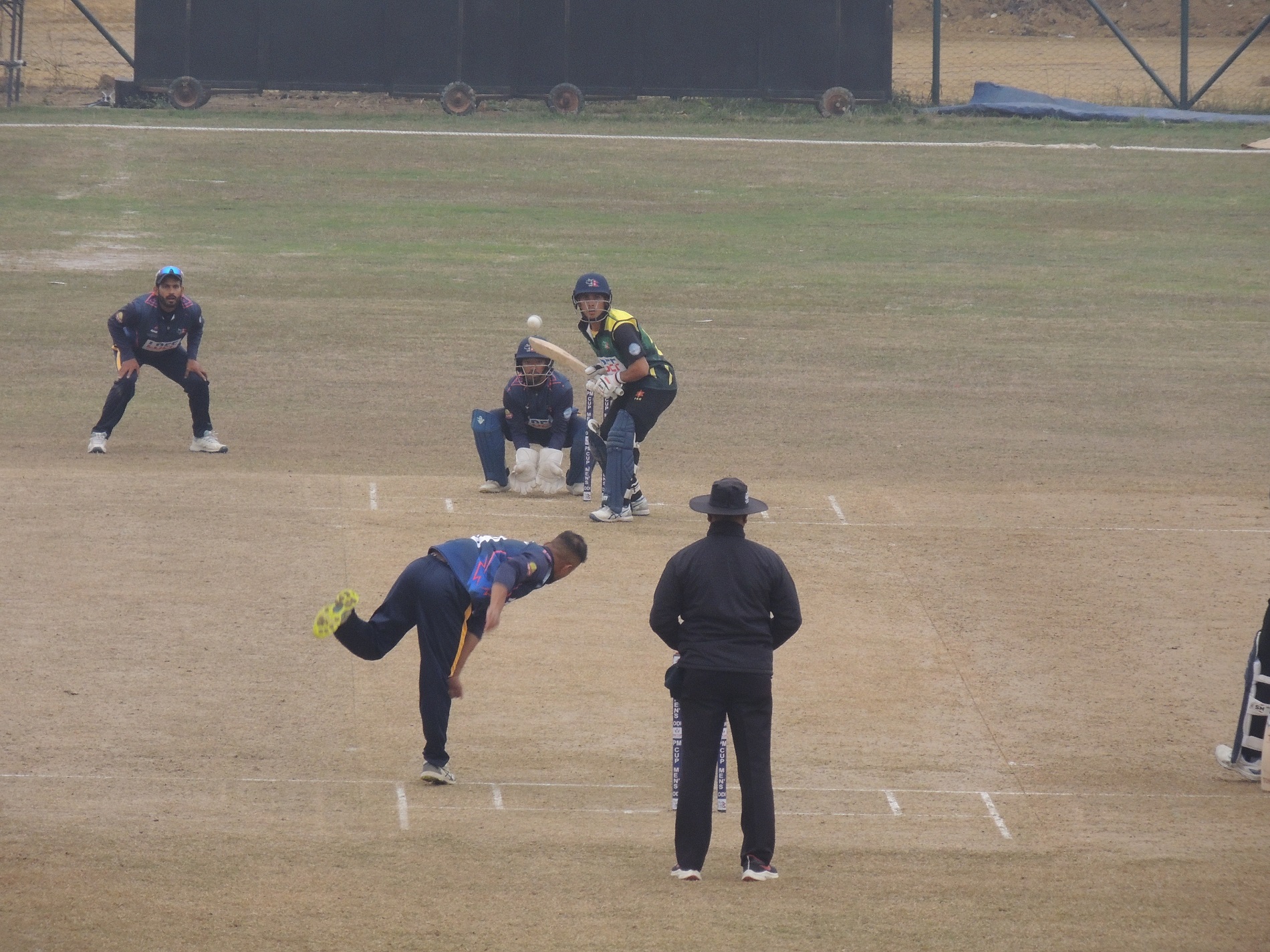 ओपनर सुनिल धमला र आरिफ शेखले चौथो विकेटका लागि ७१ रनको साझेदारी गर्दै पुलिसको इनिङलाई बलियो बनाएका थिए । आरिफ ३४ बलमा तीन चौका प्रहार गर्दै १८ रनमा २३औं ओभरमा आउट भए । त्यसपछि ब्याटिङमा आएका शंकर रानाले मात्र पाँच रन बनाउन सके । ओपनर सुनिल धमलाले तीन चौका र दुई छक्काका साथ ८० बलमा ५२ रन बनाएर पेभेलियन फर्किए । कप्तान दीपेन्द्रसिंह ऐरी पनि धेरैबेर क्रिजमा टिक्न सकेनन् । उनी १३ रन जोड्दा रन आउट भए । अलराउन्डर राशिद खानले १७ बलमा १३ रन बनाएर सोमपालको शिकार बने । त्यसपछि करण केसी १० रनमा शाहब आलमको बलमा बोल्ड भए । अन्तिममा ब्याटिङ गर्न आएका ललित राजबंशी पनि पहिलो बलमा नै शाहबकै बलमा बोल्ड भए । सागर ढकाल ३ रनमा नटआउट रहे ।