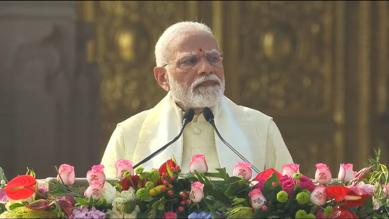 उनले अयोध्यामा मन्दिर निर्माण भएसँगै भारतको कालचक्र बदलीएको दाबी गर्दै भारतको अशुभ समय समाप्त भएर शुभ यात्रामा अगाडि बढेको बताए । उनले सताब्दीको प्रतिक्षाबाट भारत अहिलेको अवस्थामा पुगेको बताउँदै अव भारत अगाडि बढ्ने संकल्प गरे । भारतको कालचक्र सकारात्मक दिशामा अगाडि बढ्ने मोदीको विश्वास छ । ‘यही सही समय हो, हजारौं वर्षका लागि राष्ट्र निर्माणको संकल्प गर्ने बेला, रामराज्य निर्माण गर्ने बेला,’ उनले भने, ‘राम विवाद होईन, राम समाधान हो । राम भारतको आस्था र आधार हो ।’