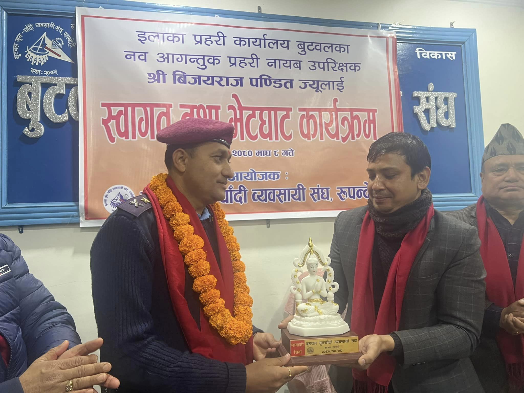 बुटवल आएका डिएसपी पण्डितलाई स्वागत गर्दै सुनचाँदी व्यवसायीले मागे सुरक्षा
