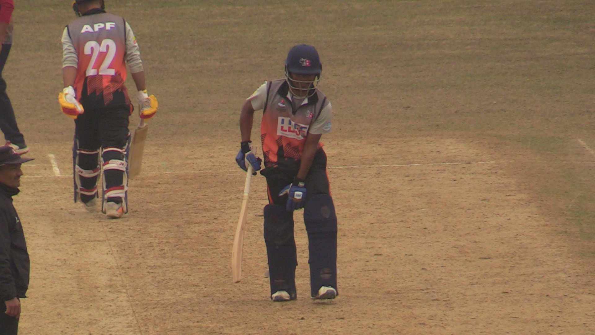भैरहवास्थित सिद्धार्थ क्रिकेट मैदानमा बिहीबार भएको खेलमा जितका लागि १ सय ३३ रनको विजयी लक्ष्य पछ्याएको एपीएफले २२ ओभर ३ बलमा ३ विकेटको नोक्सानी सहज जित निकाल्यो । जितसँगै एपीएफ ६ खेलमा ६ अंक जोड्दै छैटौं स्थानमा उक्लिएको छ । एपीएफका लागि कप्तान रोहितकुमार पौडेलले ४८ बलको सामना गर्दै ४ चौका र १ छक्काको मद्दतमा ५२ रन जोडे । रोहितले यसअघि आर्मीविरुद्ध पनि अर्धशतक बनाएका थिए । पछिल्लो ५ मध्ये ४ खेलमा उनले अर्धशतक बनाएका छन् ।