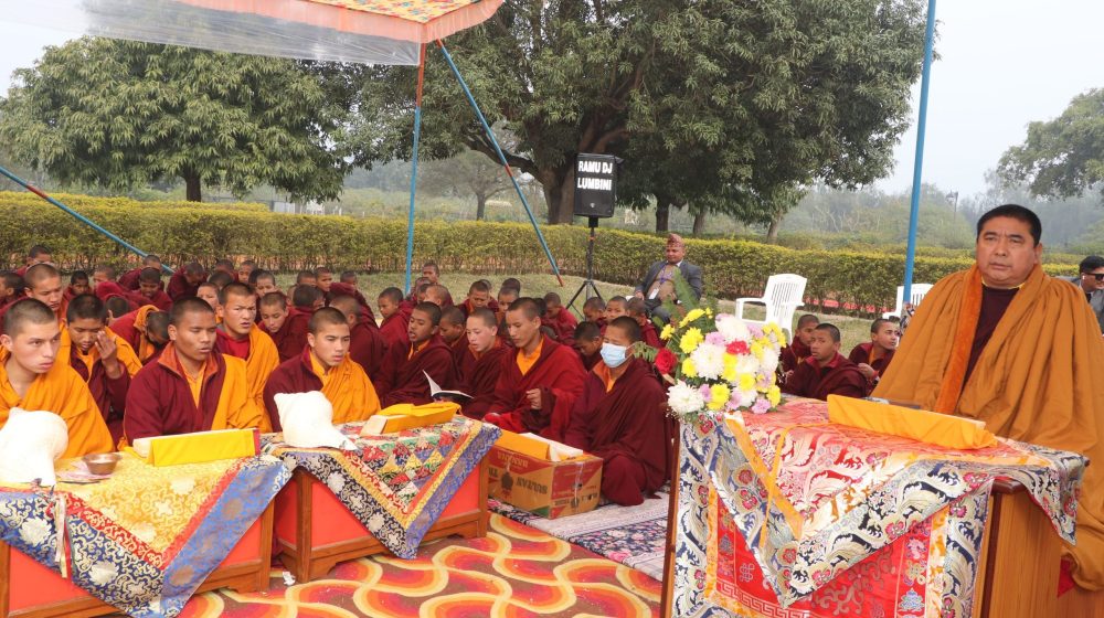 मायादेवी मन्दिर अगाडि एक लाख मन्त्रोउच्चारणसहितको महागुरु भूम्छोक एवम् प्राणीधान मोन्लम पूजा गरिएको हो।