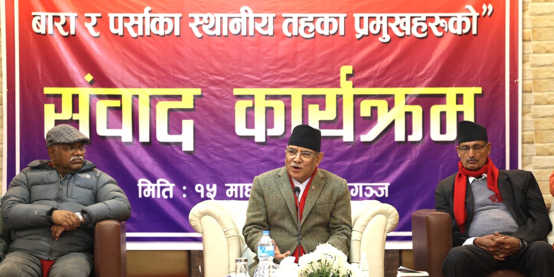 वीरगञ्ज । प्रधानमन्त्री पुष्पकमल दाहाल ‘प्रचण्ड’ले स्थानीय सरकारको प्रतिष्ठा बढाउनेगरी काम गर्नुपर्ने बताएका छन । बारा र पर्सा जिल्लाका स्थानीय तहका जनप्रतिनिधिहरूसँगको छलफलमा प्रधानमन्त्री प्रचण्डले सङ्घीय सरकारले पठाएका प्रमुख प्रशासकीय अधिकृतलाई हाजिर गर्न नदिएको गुनासो आउने गरेको भन्दै त्यस्तो गर्न नहुने बताए ।