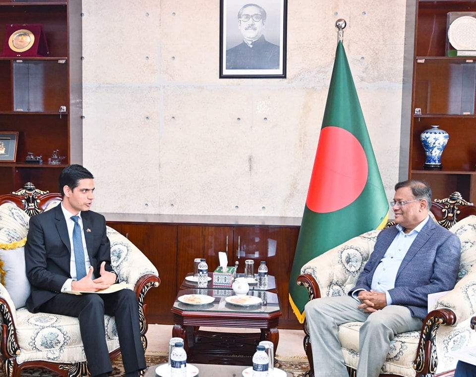 बङ्गलादेशका लागि नेपाली राजदूत घनश्याम भण्डारीले त्यहाँका नवनियुक्त परराष्ट्रमन्त्री डा हसन महमुदसँग शनिबार भएको शिष्टाचार भेटमा प्रधानमन्त्री प्रचण्डले दुई देश र जनताको पारस्परिक हितका लागि सहकार्य गर्ने प्रतिबद्धता सन्देशमा व्यक्त गरेको जानकारी दिएका थिए ।