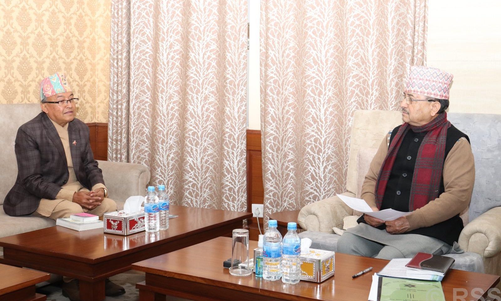 प्रमुख निर्वाचन आयुक्त थपलियाले आज सिंहदरबारस्थित रक्षामन्त्रालयमा उपप्रधानमन्त्री खड्कासँग हालै सम्पन्न राष्ट्रियसभा निर्वाचन र अब गर्नुपर्ने उपनिर्वाचनका विषयमा छलफल गरेका हुन् ।