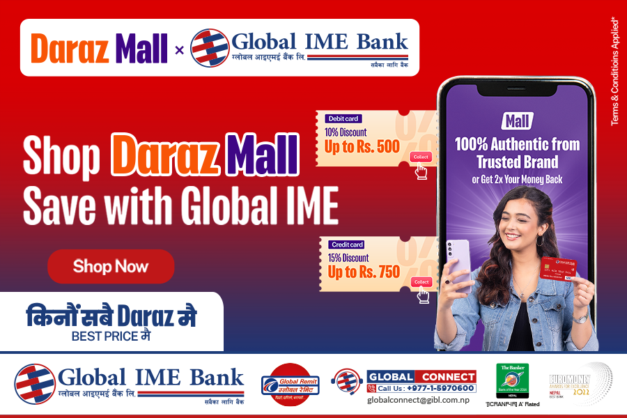 फेब्रुअरी ५ देखि अप्रिल ३० सम्म (३ महिना) संचालनमा रहने यस छुट योजनाअन्तर्गत ग्राहकहरुले ग्लोबल आइएमई बैंकको भिजा (ख्क्ष्क्ब्) डेबिट वा क्रेडिट कार्ड प्रयोग गरी दराजबाट अनलाइनमार्फत सामान खरिद गर्दा कुल खरिद मुल्यमा १५ प्रतिशतसम्म छुट पाउनेछन् ।