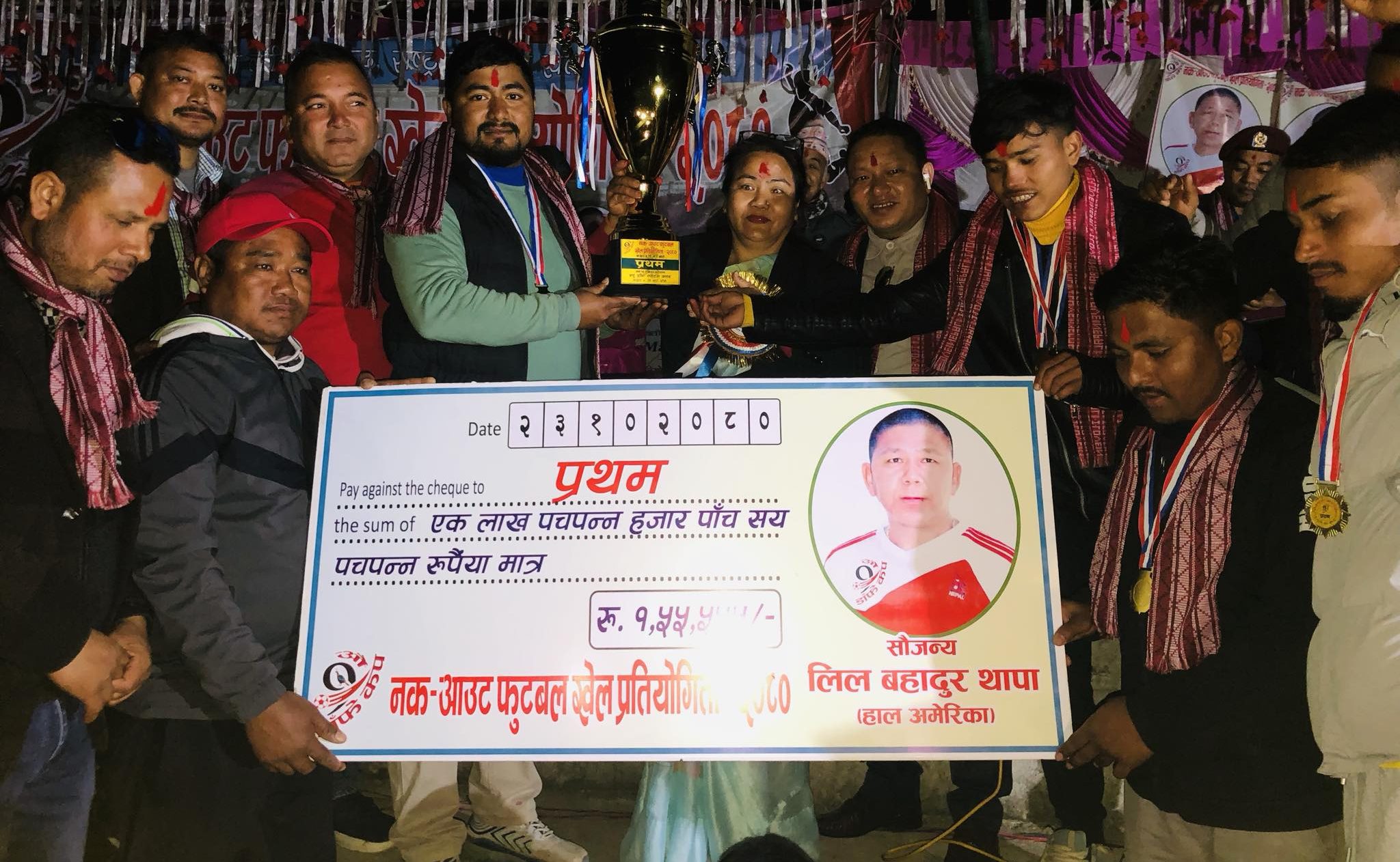 प्रथम पुरस्कार राशि हाल अमेरिकामा रहेका खजुरा गाउँपालिका वडा नम्बर ४ डि गाउँ निवासी लिल बहादुर थापाले सौजन्य गरेका हुन् भने दोस्रो पुरस्कार प्रतिक निर्माण सेवाले सौजन्य गरेको खेल संयोजक तिलकबीर सुनारले जानकारी दिए ।