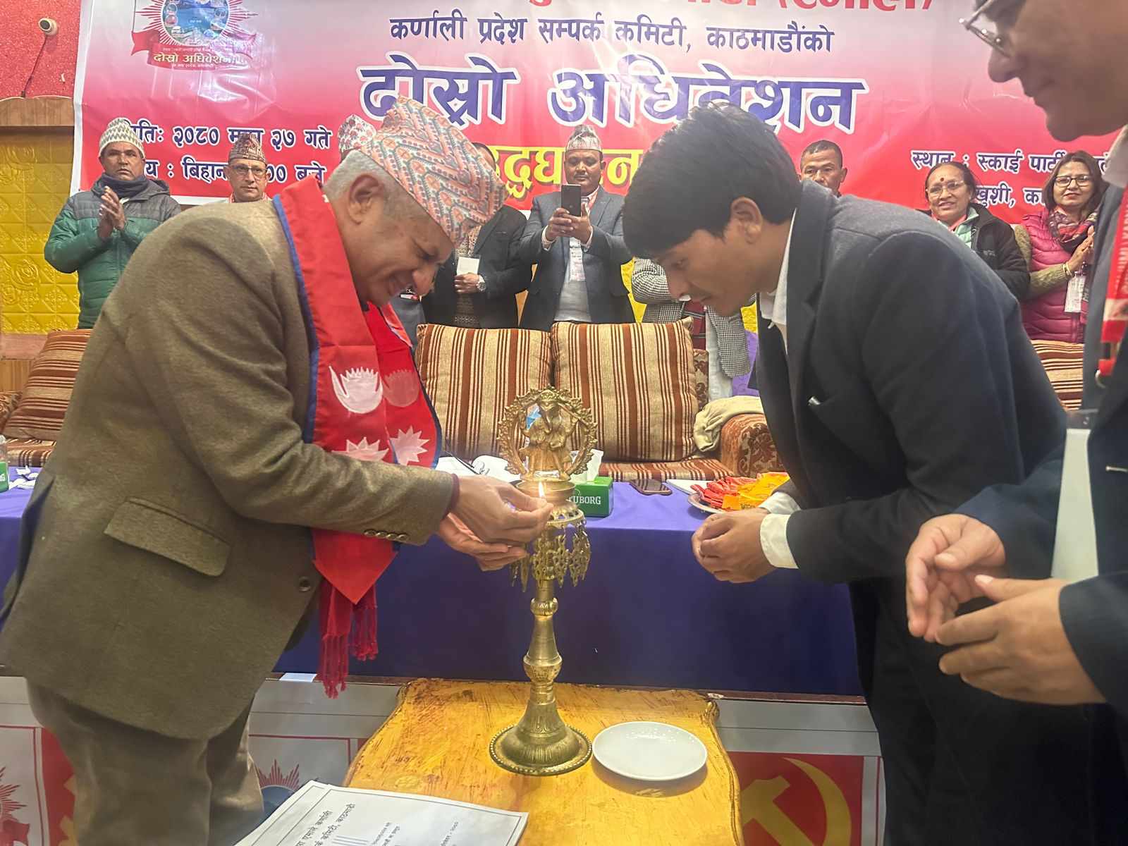 ‘जलस्रोतको अपार जलभण्डारको रुपमा रहेको कर्णालीको अप्पर कर्णालीको जिम्मा लिएको भारतको जिएमआरले गएको १५ वर्ष आयोजना होल्ड गरेर राखेकै समयमा कुनै काम नहुँदै, परियोजनाको एउटा चपरी पनि नउठाउँदै प्रधानमन्त्री प्रचण्डले आफ्नो भारत भ्रमणका बेला सत्ता लम्ब्याउन फुकोट कर्णालीको जिम्मा समेत लगाउनु भएको छ। कर्णालीलाई कसरीमाथि उठाउने हो भन्ने एजेण्डा यो सरकारको प्राथमिकतामा छैन। त्यसैले पनि कर्णालीको समग्र विकासका लागि एमालेको विकल्प छैन्,’ उपमहासचिव ज्ञवालीले भने।